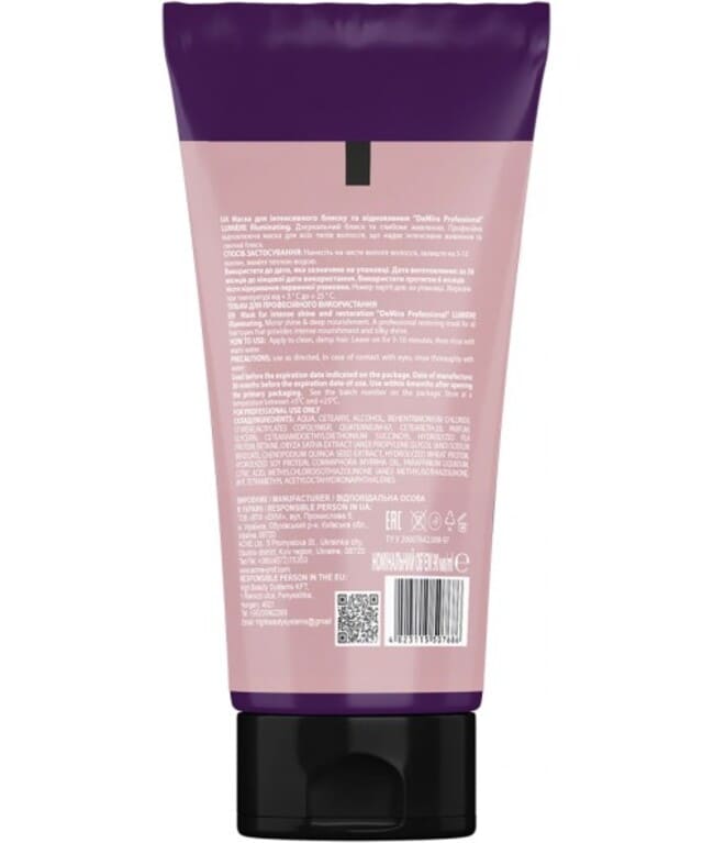 Mască Lumiere Brilliance & Shine de la ACME DeMira Professional este un produs eficient pentru toate tipurile de păr, care oferă părului strălucire sănătoasă și îi restabilește elasticitatea. Formula unică hrănește și hidratează în profunzime structura firului de păr, facilitează pieptănarea și protejează împotriva fragilității și deteriorării.