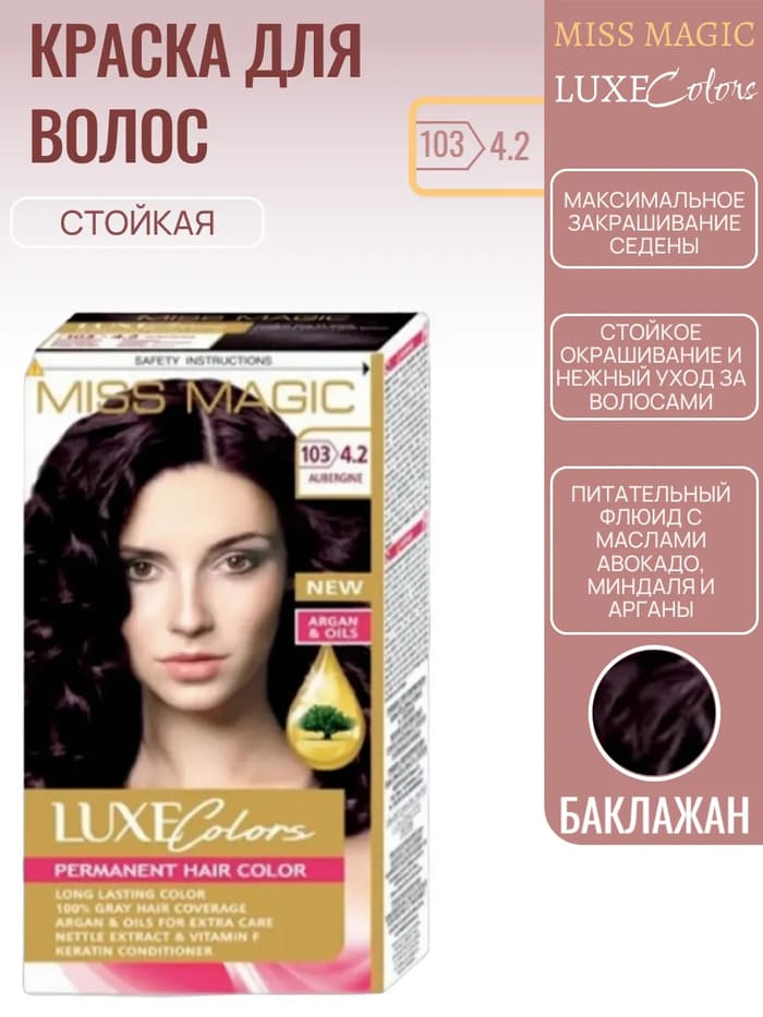 Vopsea permanentă pentru păr Solvex Miss Magic Luxe Colors, 103 (4/2) - Rosu-violet, 108 ml