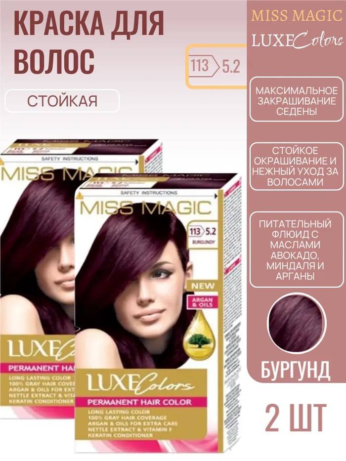Vopsea permanentă pentru păr Solvex Miss Magic Luxe Colors, 113 (5/2) - Burgundy, 108 ml