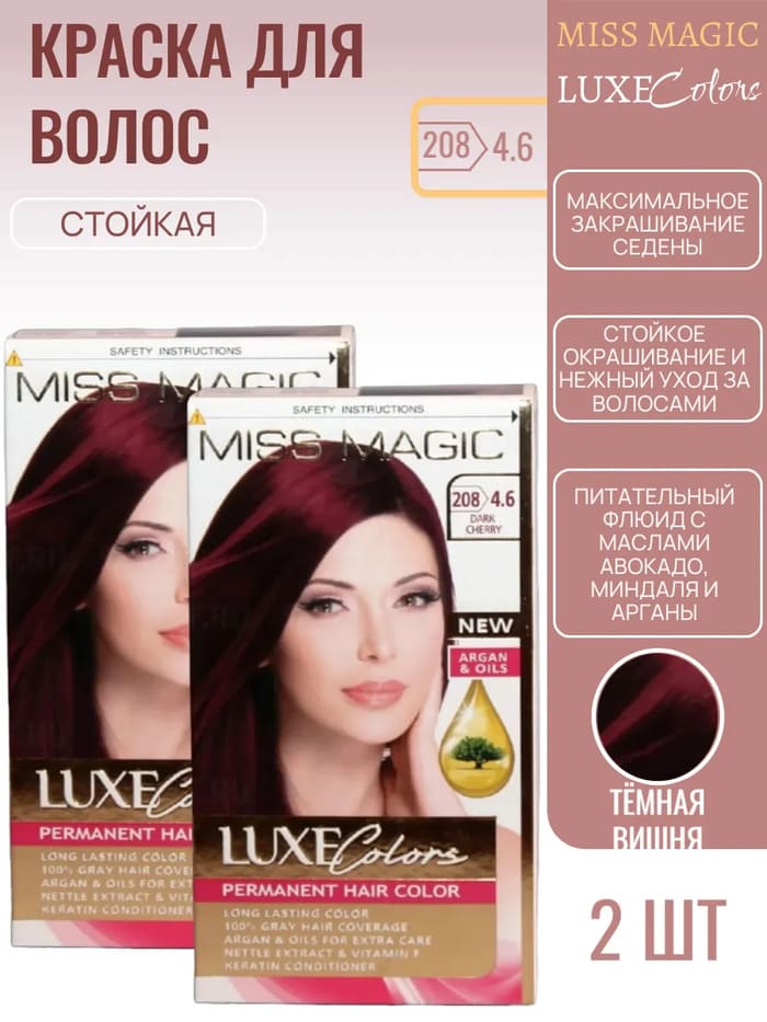 Vopsea permanentă pentru păr Solvex Miss Magic Luxe Colors, 208 (4/6) - Roscat Inchis, 108 ml