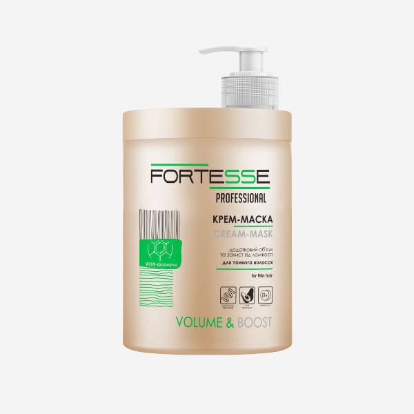 MOD DE APLICARE: Se recomandă utilizarea măștii de cel mult 1-2 ori pe săptămână. Spălați-vă părul cu șampon Fortesse Volume, aplicați masca-cremă pe părul umed, lăsați să acționeze 3-5 minute și clătiți bine cu apă. Nu aplicați pe zona rădăcinii. Dacă crema intră în ochi, clătiți bine cu apă.