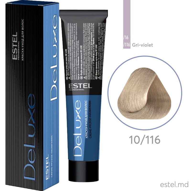 Vopseaua-îngrijire permanentă DE LUXE, 10/116 Blond deschis gri intens-violet, 60 ml
