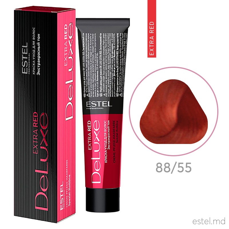 Vopseaua-îngrijire permanentă DE LUXE EXTRA RED, 88/55 Castaniu deschis roșu intens, 60 ml