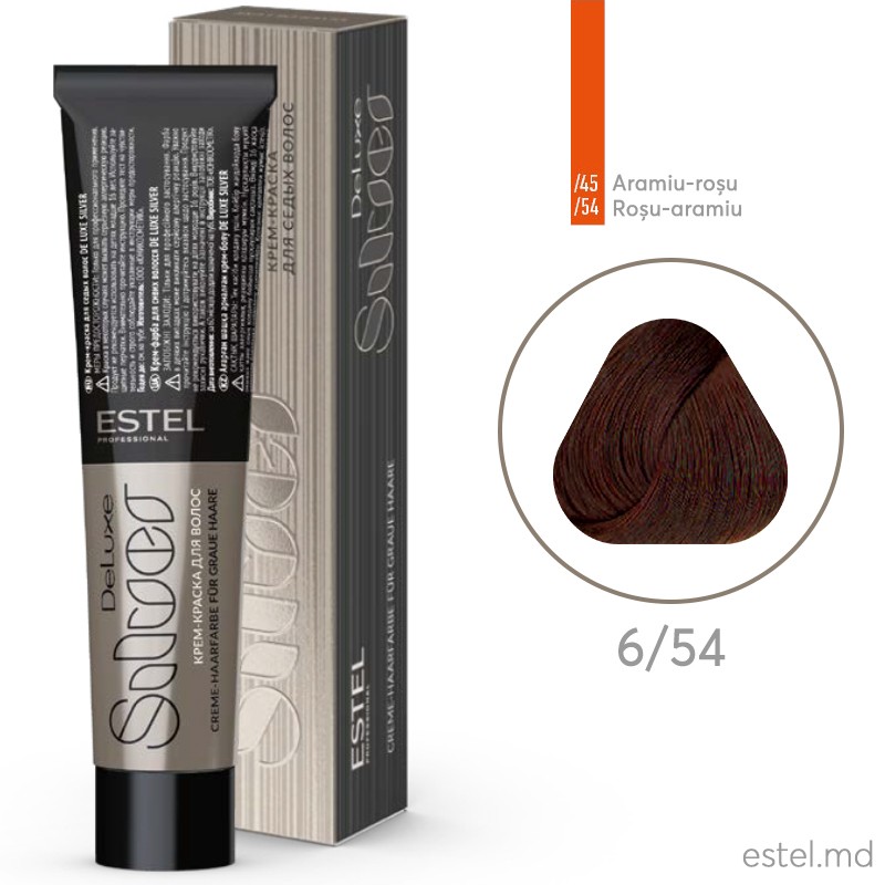 Vopsea-cremă permanentă pentru păr alb DE LUXE SILVER, 6/54 Castaniu închis roşu-aramiu, 60 ml