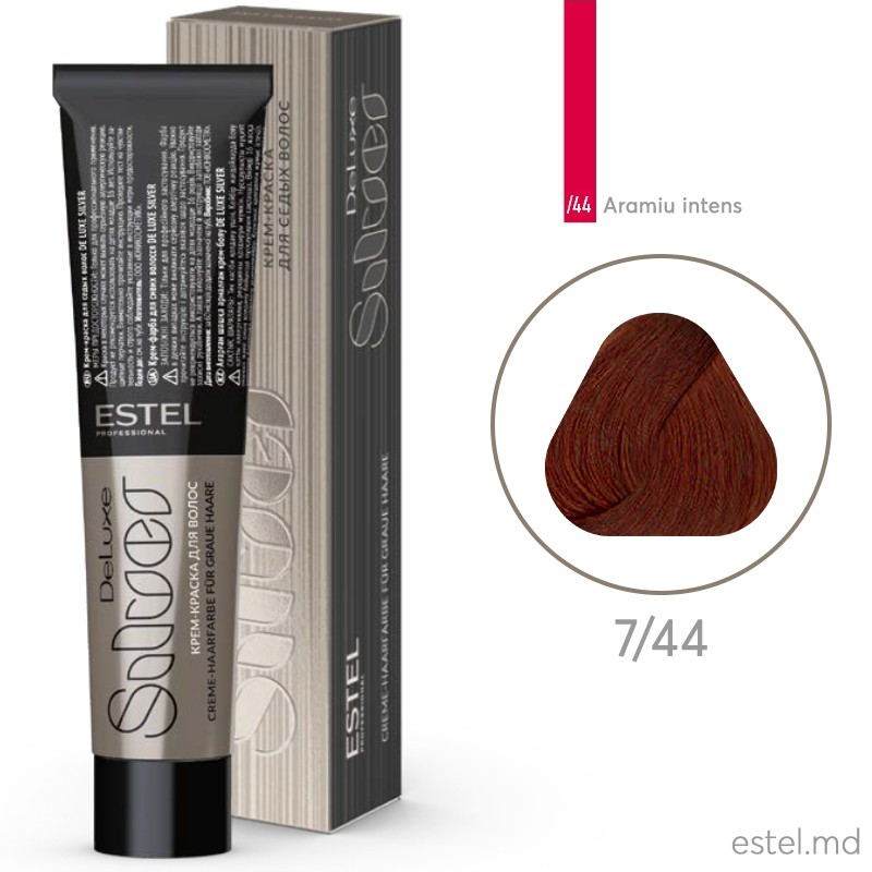 Vopsea-cremă permanentă pentru păr alb DE LUXE SILVER, 7/44 Castaniu aramiu intens, 60 ml eFrumos.md