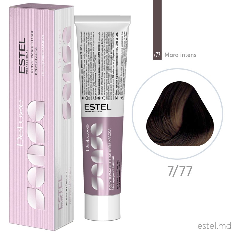 Vopsea-cremă semipermanentă pentru păr DE LUXE SENSE, 7/77 Castaniu maroniu intens, 60 ml eFrumos.md