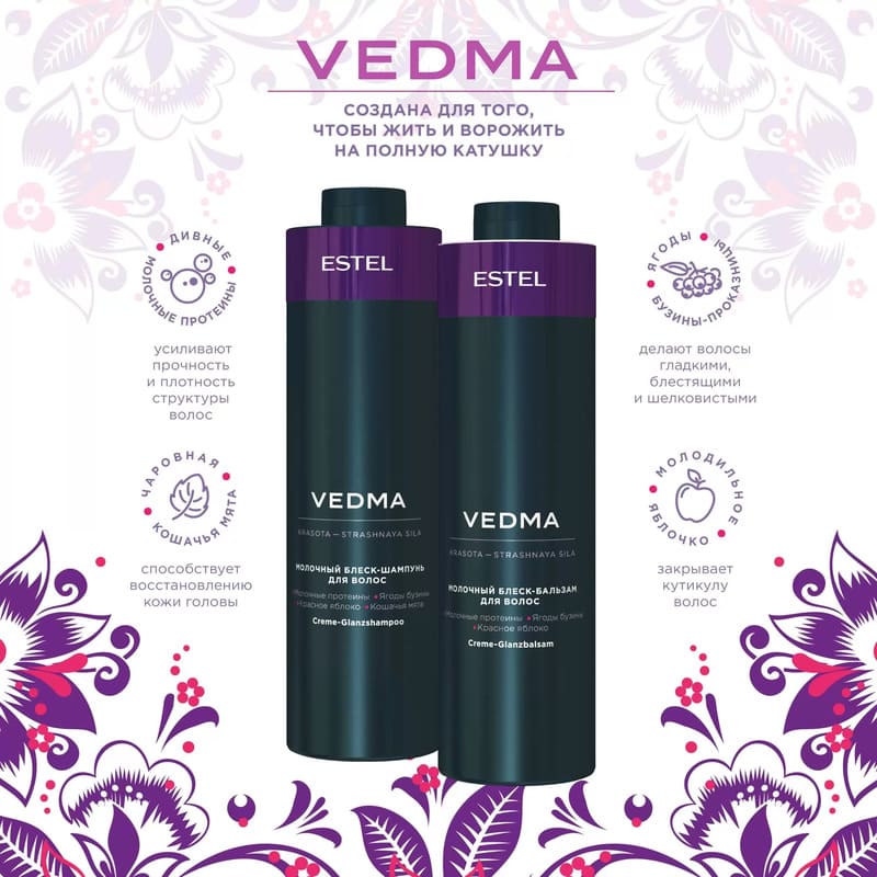 Șampon-luciu cu lapte pentru păr ESTEL VEDMA, 1000 ml