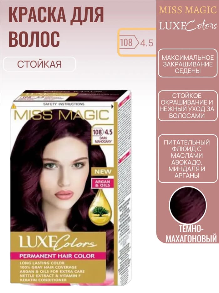 Vopsea permanentă pentru păr Solvex Miss Magic Luxe Colors, 108 (4/5) - Mahon Inchis, 108 ml