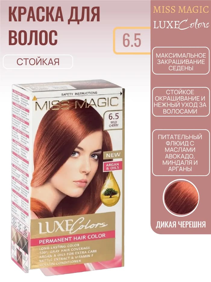 Vopsea permanentă pentru păr Solvex Miss Magic Luxe Colors asigura cea mai bună acoperire a părului gri, culori de lungă durată și îngrijire delicată a părului. Formula sa echilibrată, combinată cu uleiuri prețioase de argan, avocado și migdale, este special concepută pentru pătrunderea perfectă a pigmenților de culoare în păr. Uleiul de argan acționează ca un „supliment nutritiv” – hrănește părul uscat și deteriorat, redându-i finetea și strălucirea naturală. Extractul de urzica, vitamina F si keratina confera parului volum si elasticitate.