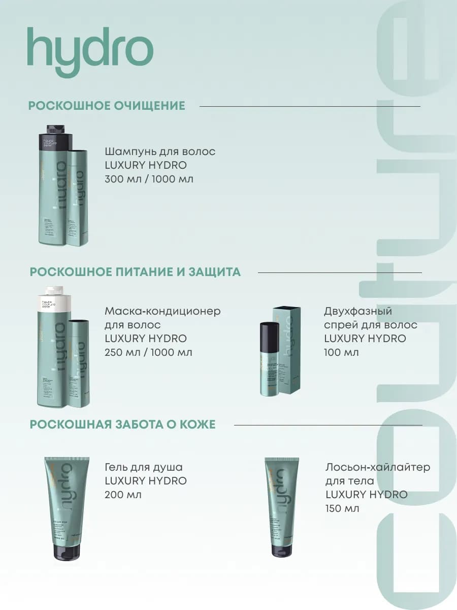 Șampon hidratare intensa pentru par uscat LUXURY HYDROBALANCE ESTEL HAUTE COUTURE, 300 ml