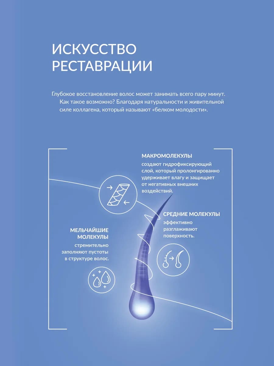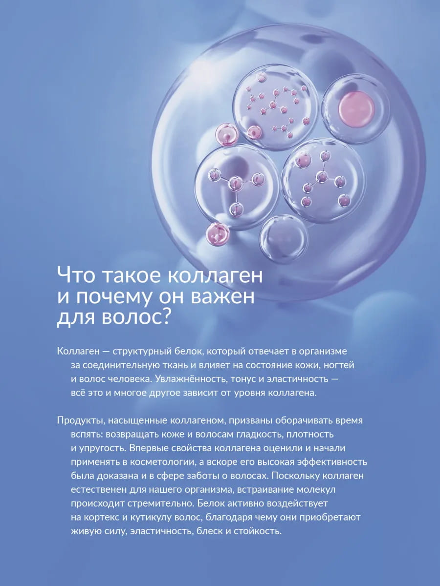 Превосходный коллагеновый праймер для стрижки и укладки. Обеспечивает лёгкое расчёсывание, антистатический эффект, термозащиту, увлажнение, уплотнение и цветофиксацию. Наполняет волосы коллагеном, не утяжеляя их, сохраняет динамику и послушность.