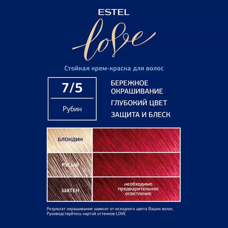 Перманентная крем-краска для волос ESTEL Love, 7/5 - Рубин, 100 мл