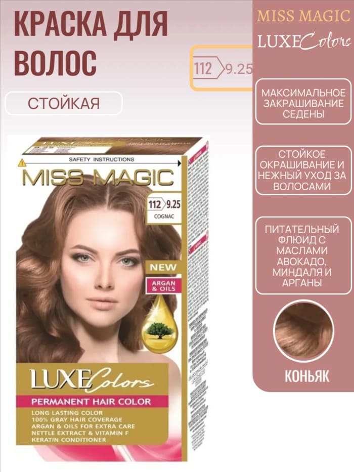 Перманентная краска для волос Solvex Miss Magic Luxe Colors, 112 (9/25) - Коньяк, 108 мл