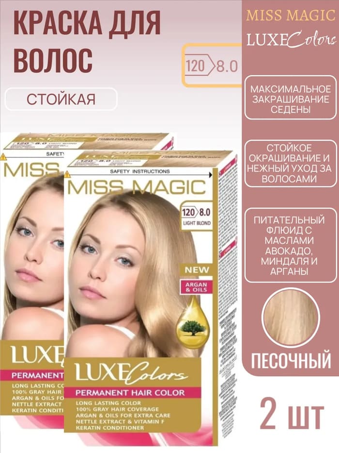 Перманентная краска для волос Solvex Miss Magic Luxe Colors, 120 (8/0) - Песочный, 108 мл