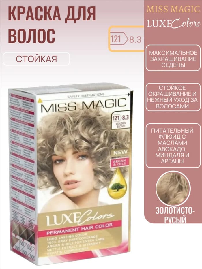 Перманентная краска для волос Solvex Miss Magic Luxe Colors, 121 (8/3) - Золотисто-русый, 108 мл